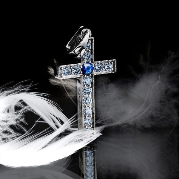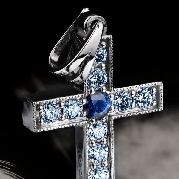 Wysadzany cyrkoniami, moissanitami, diamentami i naturalnymi kamieniami szlachetnymi.