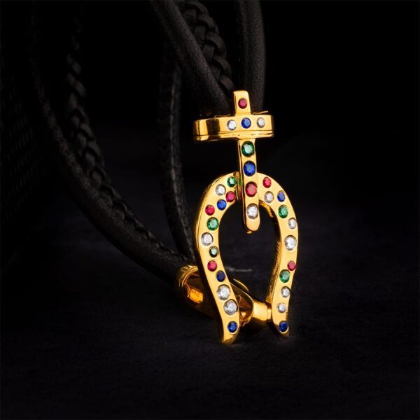 Wysadzany cyrkoniami, moissanitami, diamentami i naturalnymi kamieniami szlachetnymi.